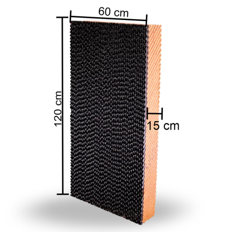 Nossas placas evaporativas foram meticulosamente projetadas com um design estrutural inovador, que proporciona uma área de superfície expandida para máxima eficiência na transferência de calor. Com sua geometria específica, asseguramos uma distribuição uniforme do ar e uma evaporação eficaz da água, resultando em um resfriamento superior em seu ambiente.