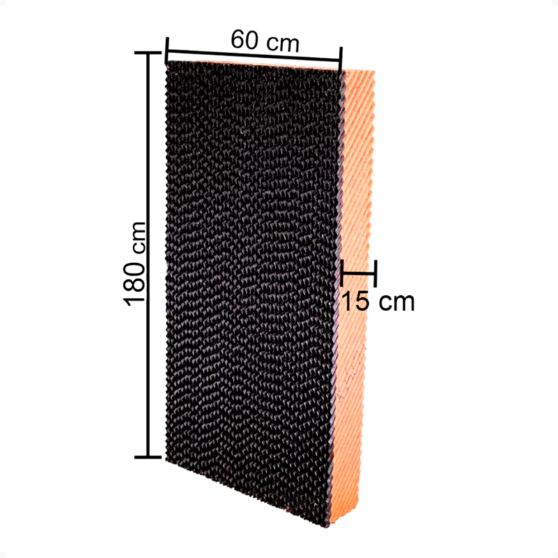 Nossa placa evaporativa apresenta uma estrutura especialmente projetada com padrão de ondulação semelhante ao de uma colmeia, otimizada para máxima eficiência na refrigeração do ar. Esta geometria específica proporciona uma área de superfície expandida, aumentando assim a superfície de contato entre o ar e a água, favorecendo a evaporação e, consequentemente, o resfriamento do ar de forma mais eficaz. Essa técnica de design permite uma transferência de calor mais rápida e eficiente, resultando em um ambiente mais fresco e confortável.