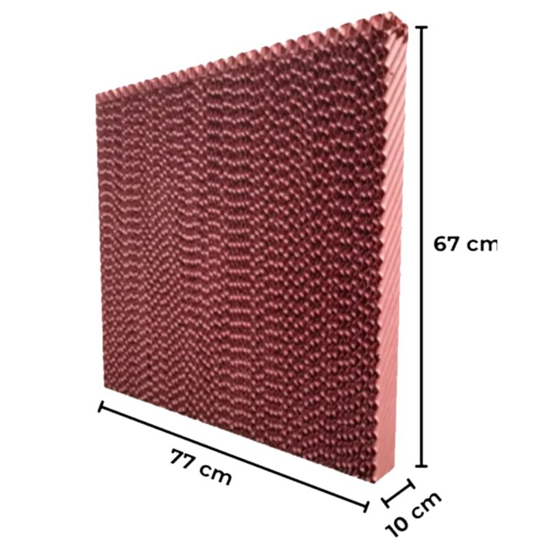 Nossas placas evaporativas foram meticulosamente projetadas com um design estrutural inovador, que proporciona uma área de superfície expandida para máxima eficiência na transferência de calor. Com sua geometria específica, asseguramos uma distribuição uniforme do ar e uma evaporação eficaz da água, resultando em um resfriamento superior em seu ambiente.