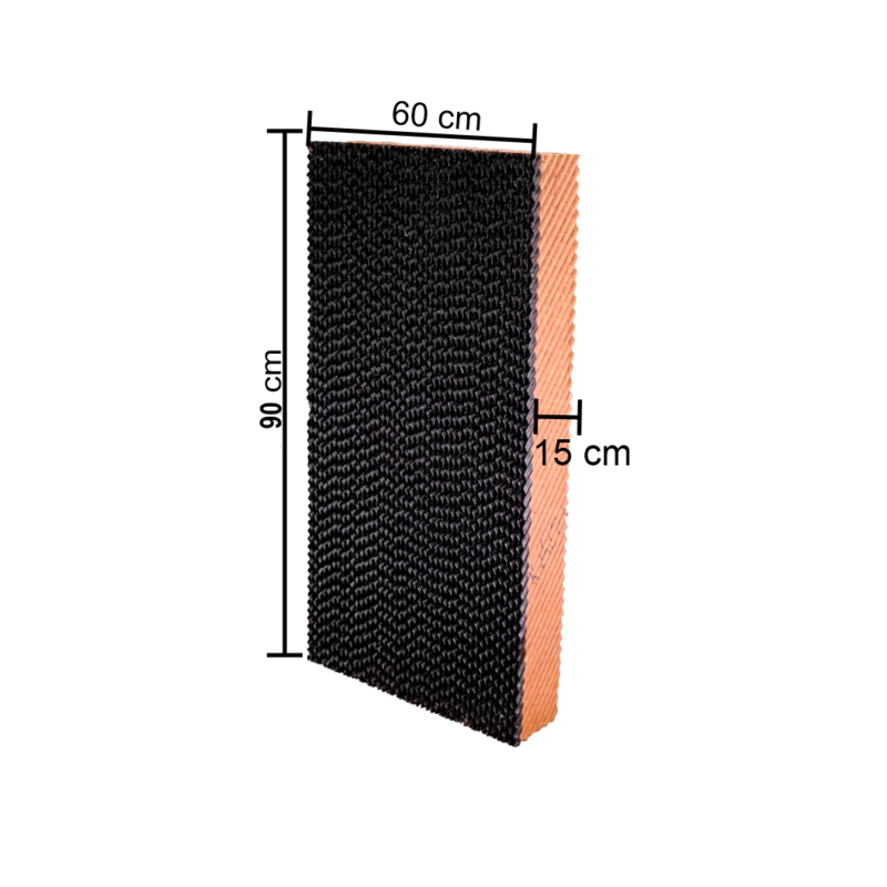 Nossas placas evaporativas foram meticulosamente projetadas com um design estrutural inovador, que proporciona uma área de superfície expandida para máxima eficiência na transferência de calor. Com sua geometria específica, asseguramos uma distribuição uniforme do ar e uma evaporação eficaz da água, resultando em um resfriamento superior em seu ambiente.
